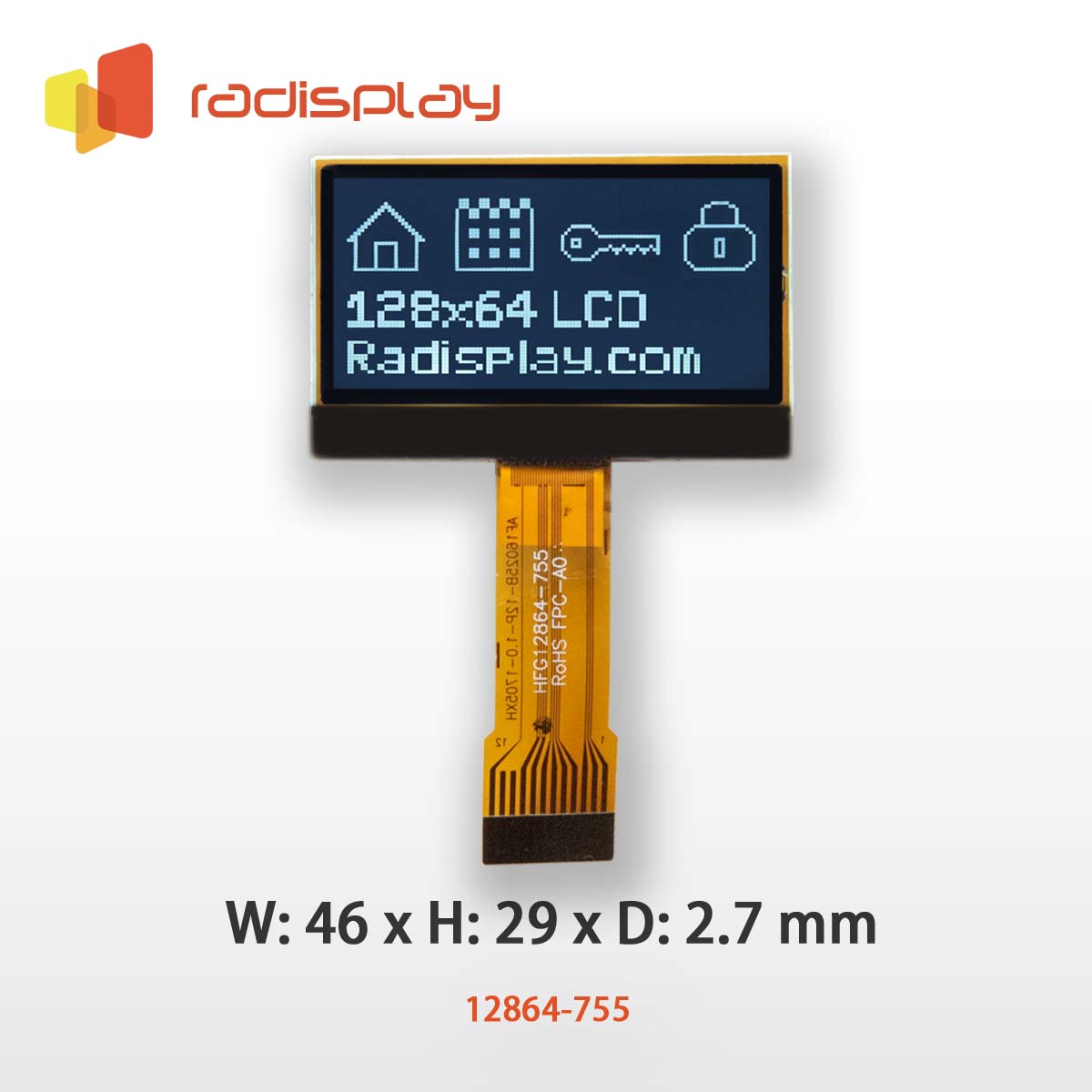 RC12864-755 is a 128x64 Graphic LCD display with compact size & easy application . A wide range of options are available for this model, including: