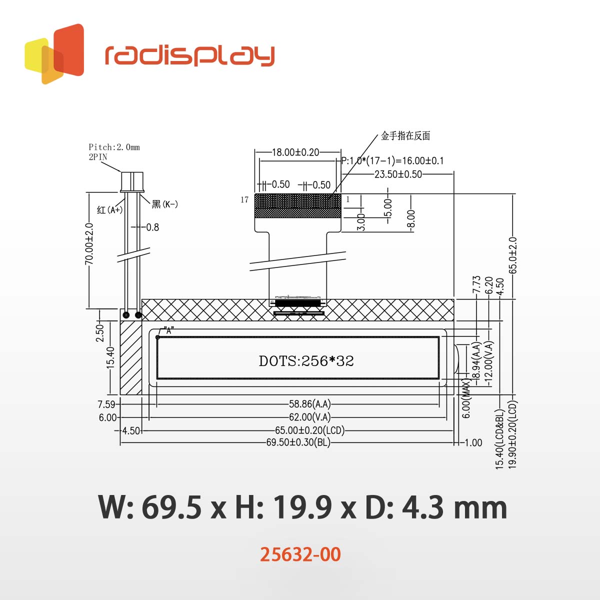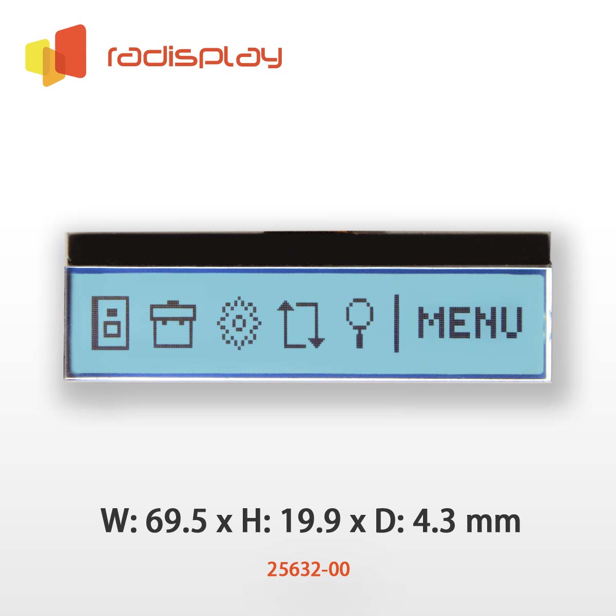 RC25632-00 is a 256x32 Graphic LCD display with compact size & easy application .